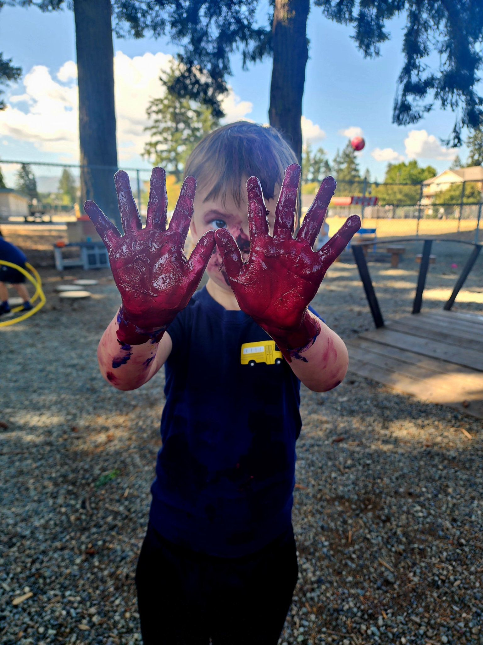 We are a centre that embraces play outside in our natural environment. We invested in muddy buddies so that every child can dress appropriately for the changing weather and enjoy a play outside in all weather.